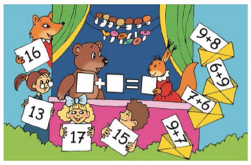 24. 1) На уроке в лесной школе медведь учил белочку, как к 7 прибавить 6.