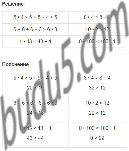 1. Сравни выражения и поставь знак >, < или =.