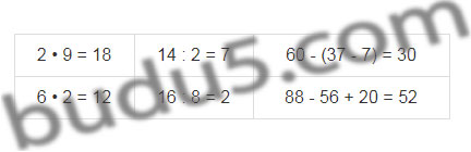 2 • 9 =![]() | 14 : 2 = ![]() | 60 - (37 - 7) =![]() |
