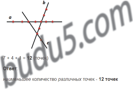 На плоскости проведены три прямые. На одной прямой отмечено пять точек, на второй — семь точек, а на третьей — три точки. Какое наименьшее количество различных точек может оказаться отмечен­ным?