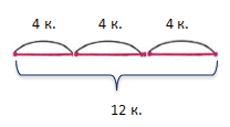 12 : 4 = 3 (р.)
