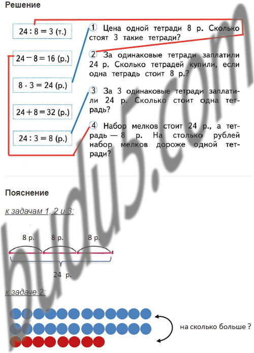 | 1. Цена одной тетради 8 р. Сколько стоят 3 такие тетради? |