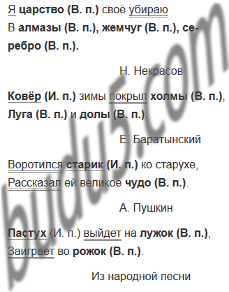 Запишите любой из отрывков по памяти. Обозначьте именительный и винительный падежи имён существительных.