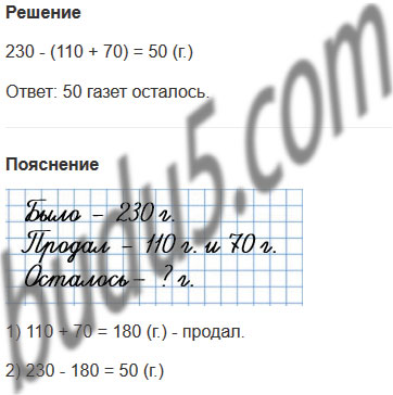 4. У продавца было 230 газет. До обеда он продал 110 газет, а после обеда ещё 70. Сколько газет осталось у продавца?