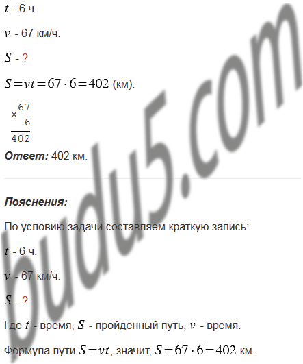 Найдите по формуле пути расстояние, которое пройдет поезд за 6 ч, двигаясь со скоростью 67 км/ч.