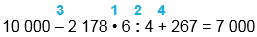 Складываю единицы тысяч: 6 + 7 = 13, да ещё 1 сот., которая получилась при сложении сотен: 13 + 1 = 14. Чтобы получилось 0 в единицах, нужно прибавить 6: 14 + 6 = 20.