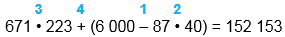 671 • 223 + (6 000 - 87 • 40) = 152 153