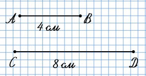 Ответ: в 2 раза отрезок АВ длиннее отрезка CD; отрезок СD на 4 см меньше отрезка АВ.
