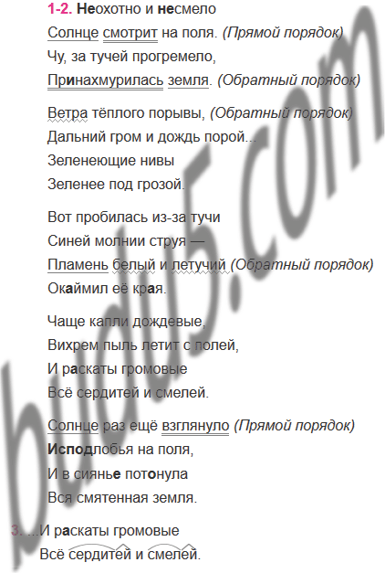 2. Приведите примеры прямого и обратного порядка слов в данном тексте. Прочитайте стихотворение выразительно, соблюдая интонационные правила.