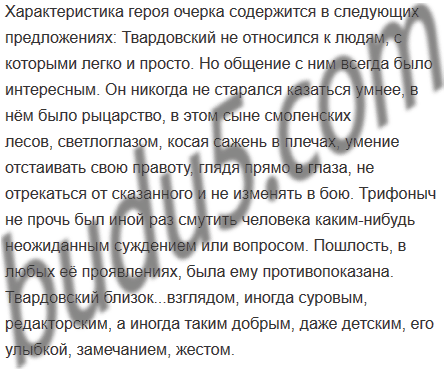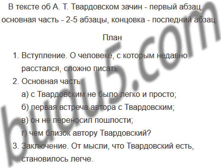 Рассмотрите композицию текста о А. Т. Твардовском. Найдите в тексте зачин, центральную часть, концовку. Составьте сложный план текста. Выпишите слова и выражения, в которых содержится характеристика героя очерка, раскрывается основная мысль автора.