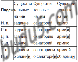 Рассмотрите таблицу и, пользуясь ею, просклоняйте существительные здание, санаторий, армия.