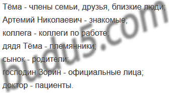 Кто и в каких ситуациях может называть старшего брата ученика N так: Тёма, Артемий Николаевич, коллега, дядя Тёма, сынок, господин Зорин, доктор? Опишите эти ситуации.