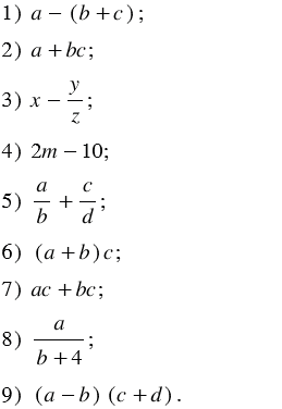 Используя термины "сумма", "разность", "произведение", "частное", прочитайте алгебраические выражения и укажите, какие из них являются целыми: