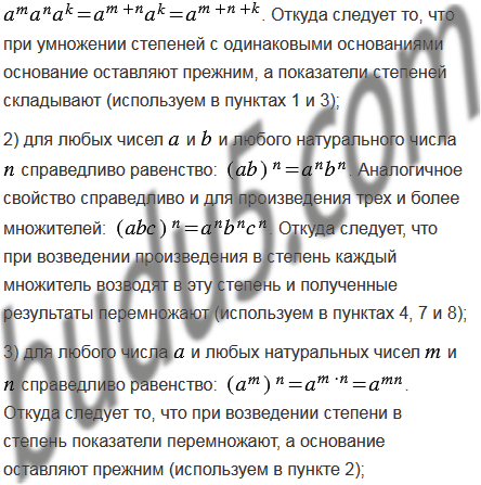 2. Как умножить и разделить степени с одинаковыми основаниями, как возвести степень в степень и как возвести произведение в степень.