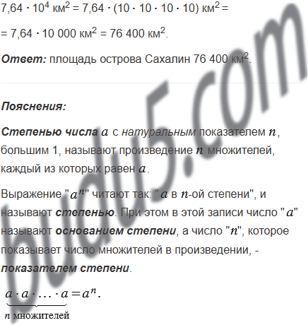 Площадь острова Сахалин - самого большого острова России - составляет 7,64104 км2. Выразите эту площадь натуральным числом в квадратных километрах.