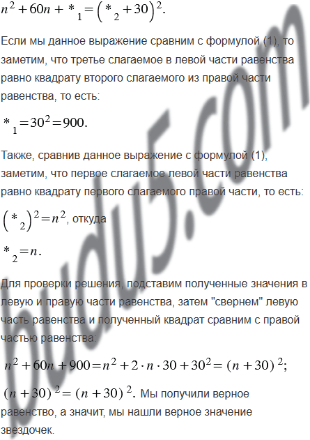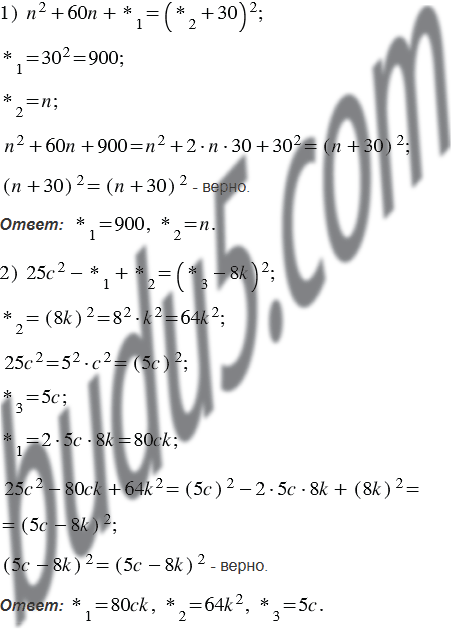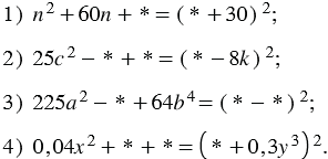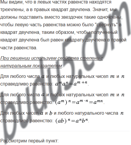 Замените звёздочки такими одночленами, чтобы выполнялось тождество: