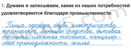1. Подумай и запиши, какие из твоих потребностей удовлетворяются благодаря промышленности.