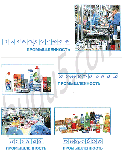 2. Рассмотри фотографии. Впиши в клеточки названия соответствующих отраслей промышленности.
