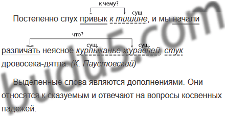 Постепенно слух привык к тишине, и мы начали различать неясное курлыканье журавлей, стук дровосека-дятла. (К. Паустовский)