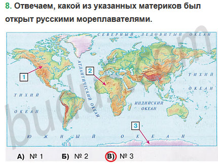 8. Какой из указанных материков был открыт русскими мореплавателями?