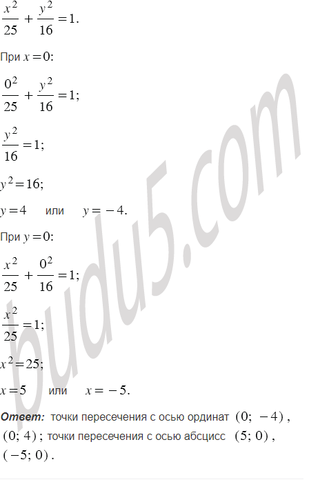 Графиком уравнения является кривая, которую называют эллипсом (рис. 49). Найдите координаты ее точек пересечения с осями координат.