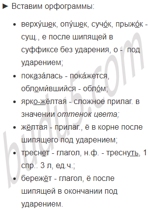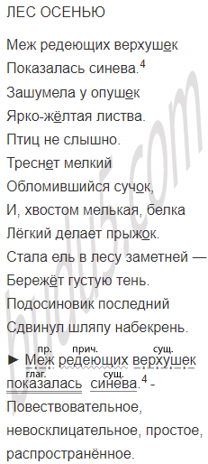Прочитайте стихотворение. Попытайтесь передать своими словами описанную поэтом картину осени. Спишите. Сделайте письменный синтаксический разбор первого предложения. (О порядке разбора см. в «Приложении» на с. 205.) Графически обозначьте условия выбора вставленных орфограмм после шипящих.