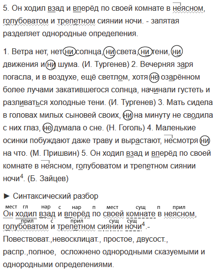 1. Ветра нет нет (н..)солнца (н..)света (н..)тени (н..)движения и (н..)шума. (И. Тургенев) 2. Вечерняя з..ря погасла, и в воздухе, ещё светл..м, хотя (н..)оз..рённом более лучами закатившегося солнца, нач..нали густеть и разл..ват(?)ся холодные тени. (И. Тургенев) 3. Мать сидела в головах милых сыновей своих, н.. на минуту (н..)св..дила с них глаз (н..)думала о сне. (Н. Гоголь) 4. Маленькие осинки побуждают даже траву и выр..стают, (не)смотря (н..)на что. (М. Пришвин) 5. Он ходил (в)зад и (в)перёд по своей комнате в (н..)ясном г..лубоватом и треп..тном сиянии ночи.4 (Б. Зайцев)
