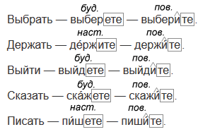Обратите внимание, что в изъявительном наклонении (в наст. или буд. вр.) окончания глаголов зависят от спряжения.