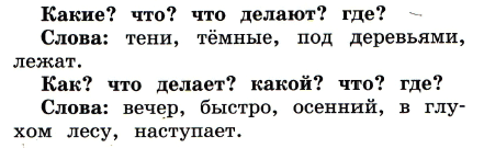 1. Составь из записанных слов предложения по вопросам.