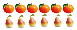Мы видим, что яблок больше, чем груш, но меньше, чем клубничек.
